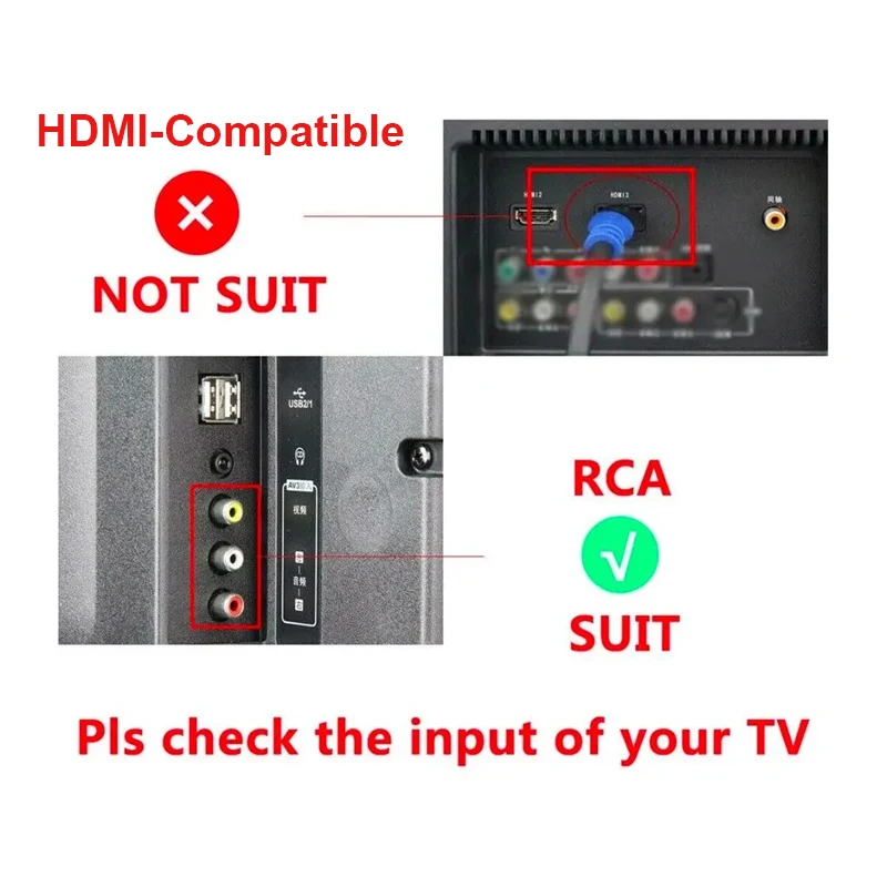 Output ports: 1xRCA (Yellow, White, Red)